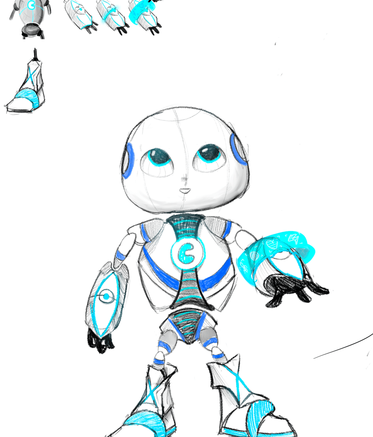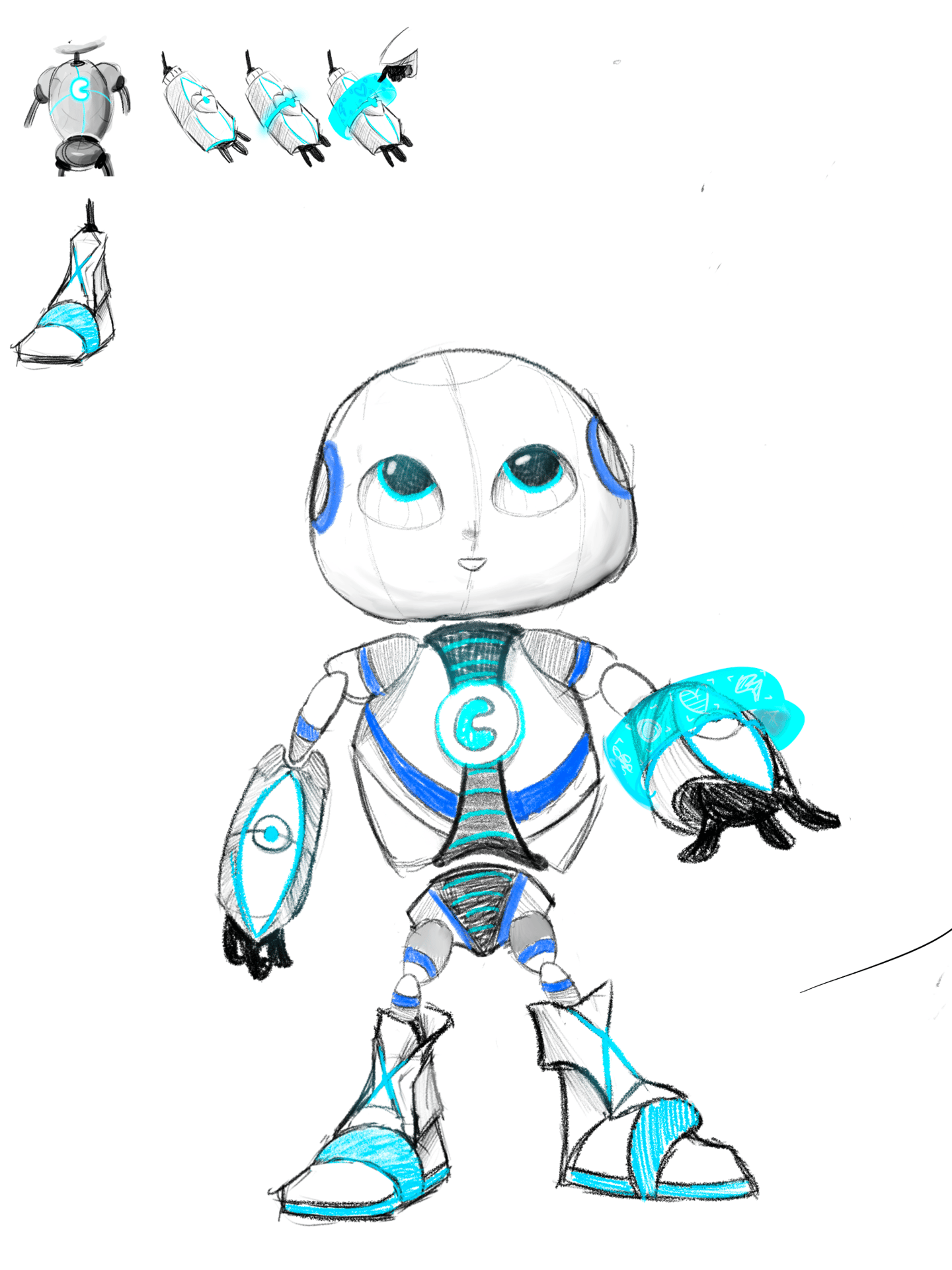 Das Gesicht eines Startups - Das Maskottchen einer Vision. Das ist "Cupi", der freundliche Roboter, der Mensch und Technologie vereinen soll. Cupi entstand aus durchdachtem Konzept und erwachte nach dutzenden Zeichnungen und Stunden in der 3D Visualisierung zum Leben.