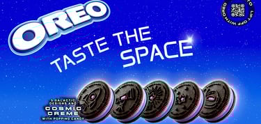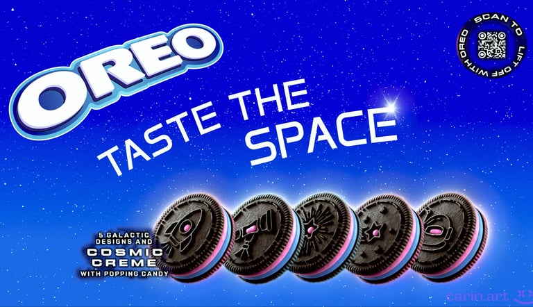This advertisement, inspired by the Oreo special edition "Space Dunks," focuses on creating an attention-grabbing and futuristic brand appearance, combined with visual storytelling and a touch of humor. The goal is to deliver a unique visual experience on social media platforms with the potential to go viral.